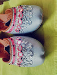 Bought the fancy khussa shoes, and they're awesome! The pretty designs on them make them look so cool, and they're super comfy. Great for parties or just looking good. Big fan!
