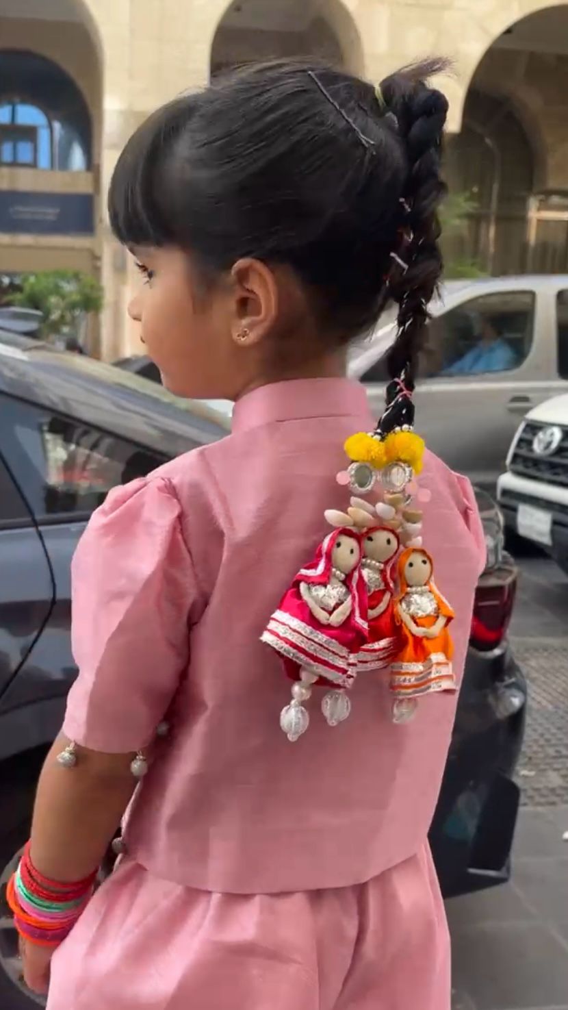 Multi Doll Hair Paranda – Handmade with Gota, Mirrors & Pompoms For KIds