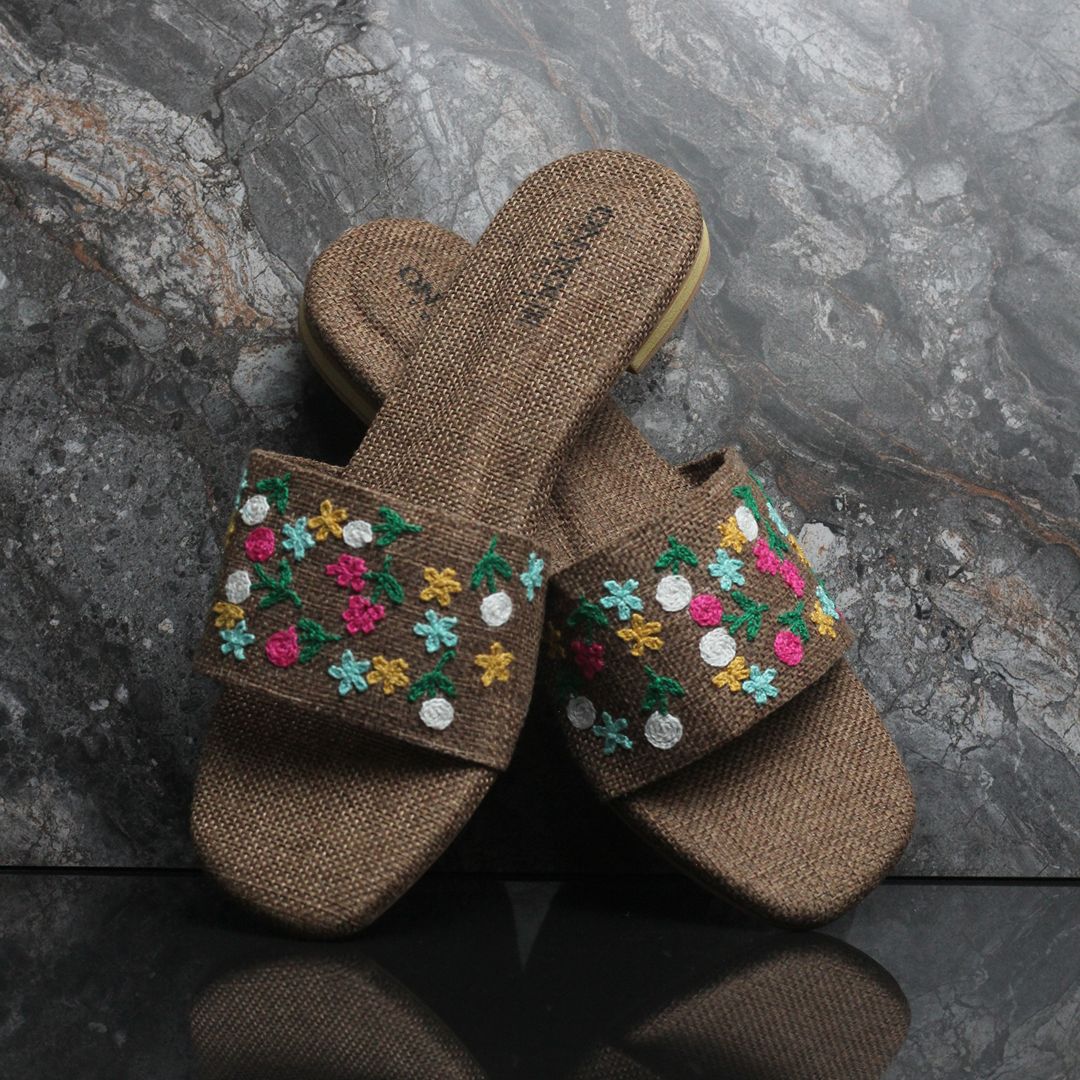 Upper crafted from knitted jute fabric with beautiful hand embroidery