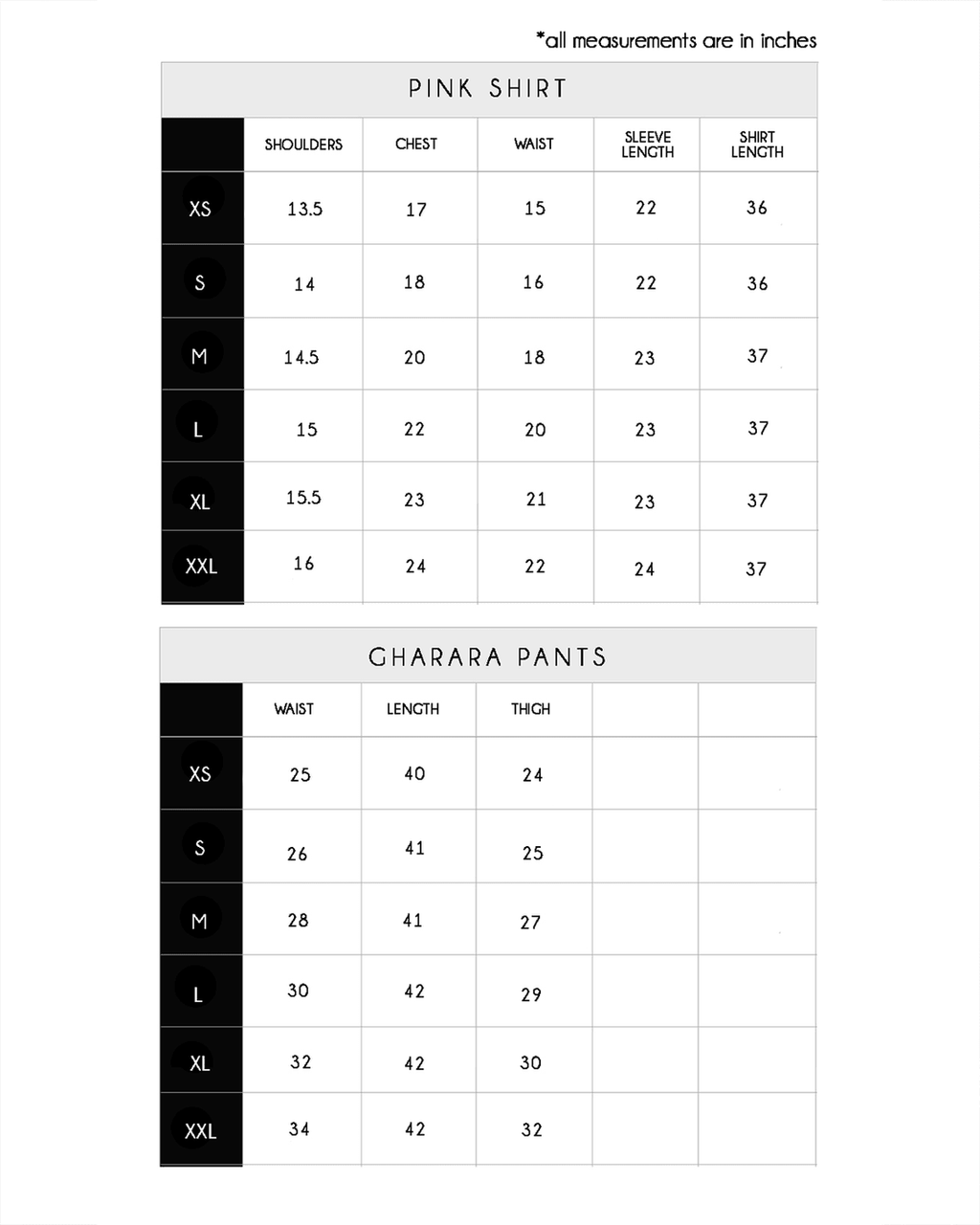 Complete 3-piece set: Shirt, Gharara Pants, Dupatta