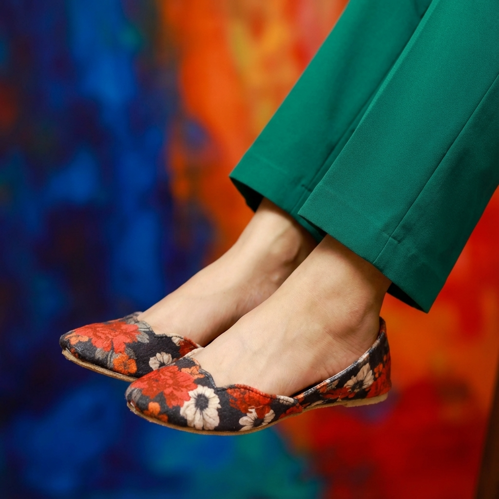 Wisteria Velvet Khussa – Elegant Printed Everyday Wear For Women