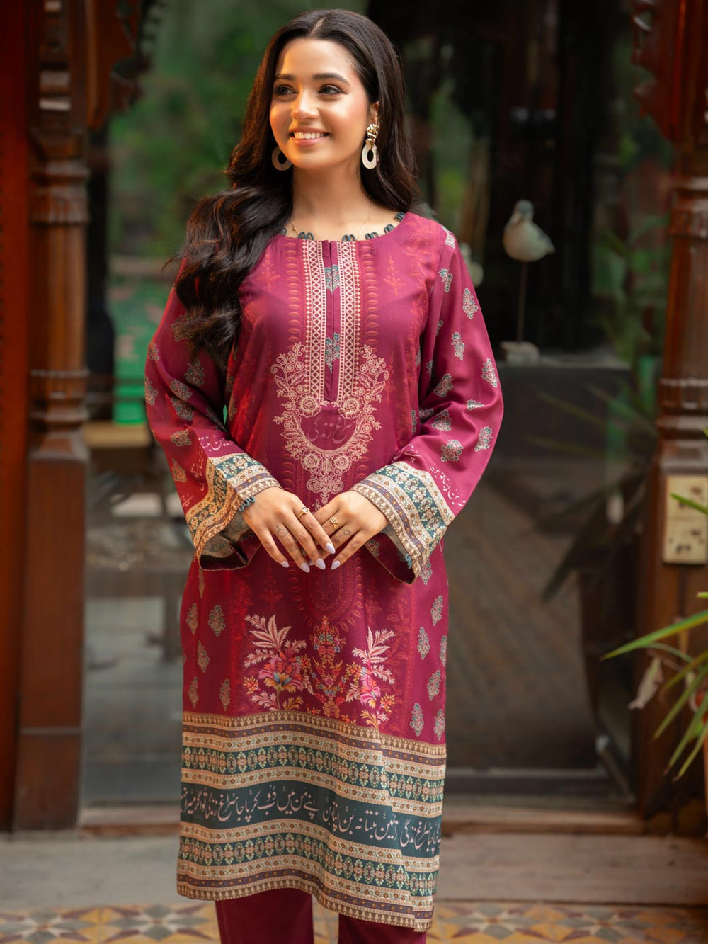 • Color: Rich maroon with digital printed designs